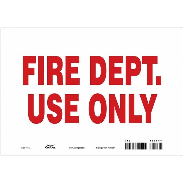 SAFETY SIGN FIRE AND EMERGENCY, Vertical Rectangle, Number of Printed Sides 1, English, Sign Legend Fire Dept. Use Only, Sign Legend Background Color White, Sign Legend Style Text