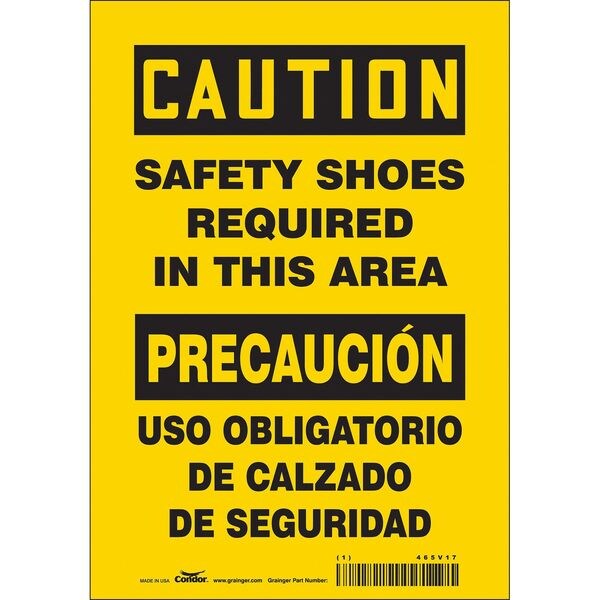 Safety Sign, Horizontal Rectangle, Number of Printed Sides 1, English, Spanish, Sign Format Traditional OSHA, Sign Legend Safety Shoes Required In This Area/Uso Obligatorio De Calzado De Sequridad, Sign Legend Background Color Yellow, Sign Legend Style Text