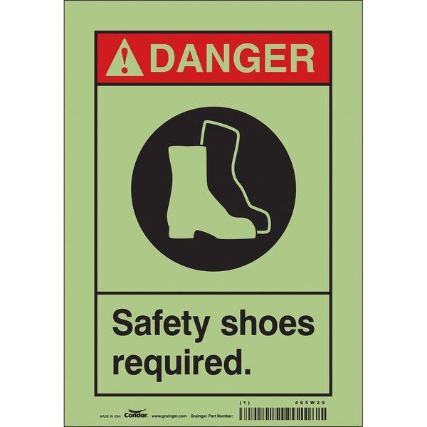 Safety Sign, Horizontal Rectangle, Number of Printed Sides 1, English, Sign Format ANSI/OSHA Format, Sign Legend Safety Shoes Required., Sign Legend Background Color White, Sign Legend Style Symbol and Text