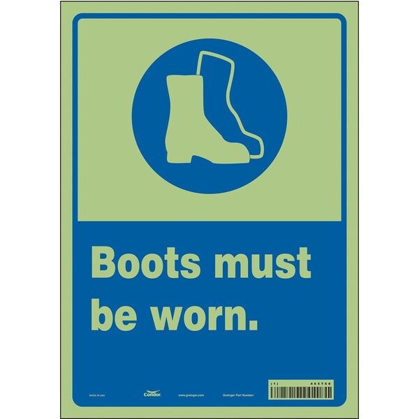 Safety Sign, Vertical Rectangle, Number of Printed Sides 1, English, Sign Format Other Format, Sign Legend Boots Must Be Worn., Sign Legend Background Color Blue, White, Sign Legend Style Symbol and Text