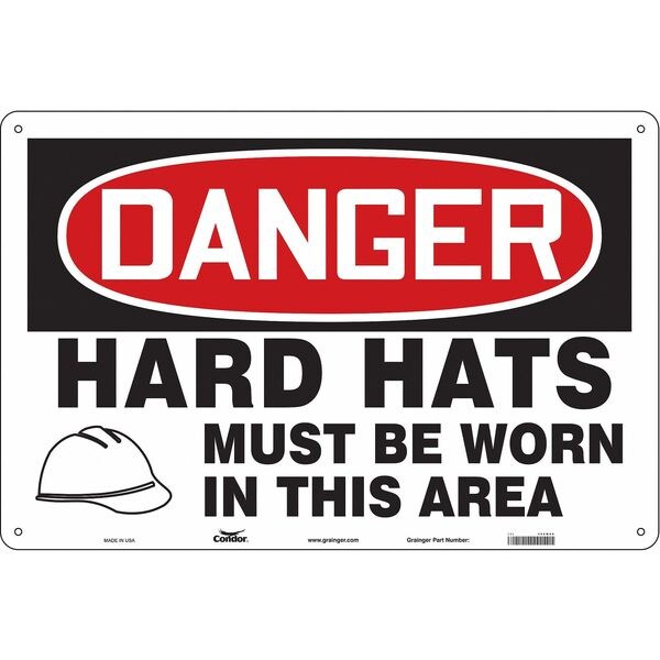 Safety Sign, Horizontal Rectangle, Number of Printed Sides 1, English, Sign Format Traditional OSHA, Sign Legend Hard Hats Must Be Worn In This Area, Sign Legend Background Color White, Sign Legend Style Symbol and Text