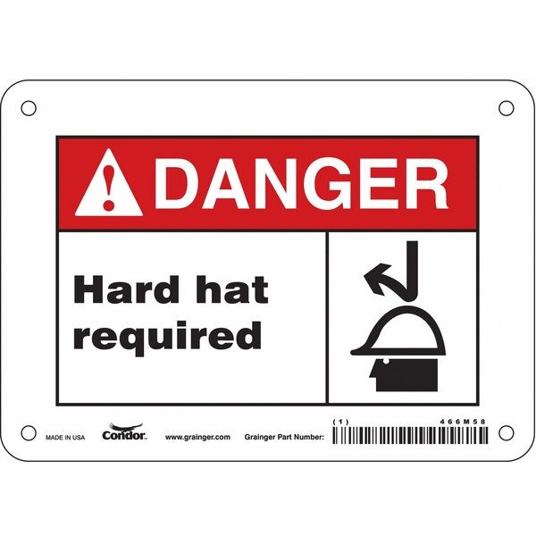 Safety Sign, Horizontal Rectangle, Number of Printed Sides 1, English, Sign Format ANSI/OSHA Format, Sign Legend Hard Hat Required, Sign Legend Background Color White, Sign Legend Style Symbol and Text