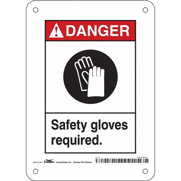 Safety Sign, Vertical Rectangle, Number of Printed Sides 1, English, Sign Format ANSI/OSHA Format, Sign Legend Safety Gloves Required., Sign Legend Background Color White, Sign Legend Style Symbol and Text