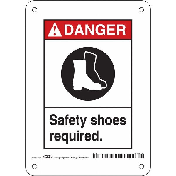 Safety Sign, Vertical Rectangle, Number of Printed Sides 1, English, Sign Format ANSI/OSHA Format, Sign Legend Safety Shoes Required., Sign Legend Background Color White, Sign Legend Style Symbol and Text