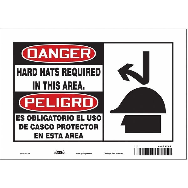 Safety Sign, Vertical Rectangle, Number of Printed Sides 1, English, Spanish, Sign Format Traditional OSHA, Sign Legend Hard Hats Required In This Area/Es Obligatorio El Uso De Casco Protector En Esta Area, Sign Legend Background Color White, Sign Legend Style Symbol and Text