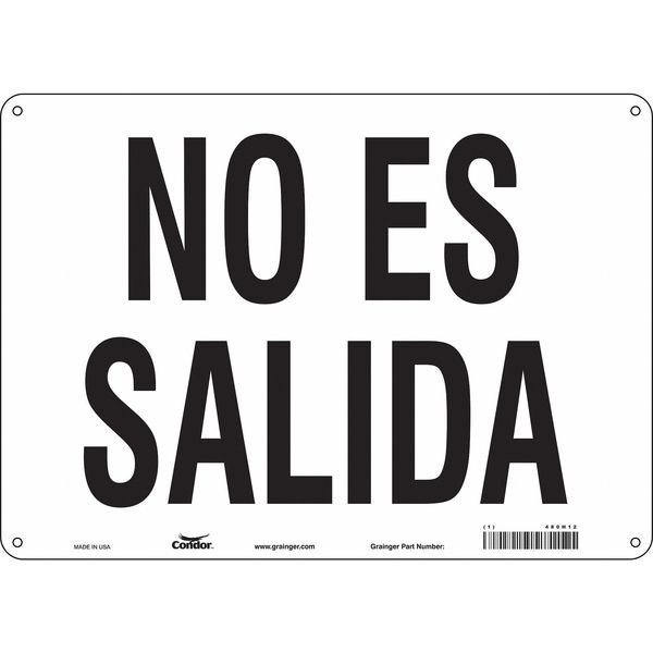 Safety Sign, Polyethylene, 14 in W, 10 in H, NO ES SALIDA, White