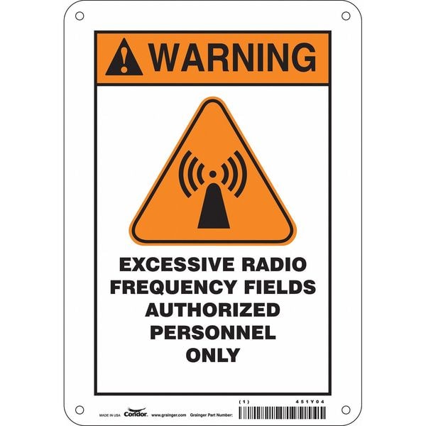 Safety Sign Radiofrequency/ Microwave, 10 in H, 7 in W, Polyethylene, Horizontal Rectangle, 451Y04