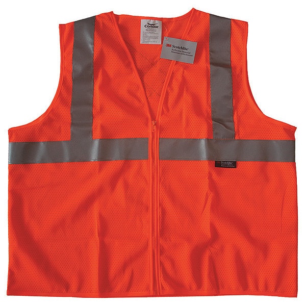 High-Visibility Vest, ANSI Class Not Rated, Vest Size 2XL, Traffic Safety Vest Color Orange/Red, Fits Chest Size 53 in to 56 in, Gender Men's, Stripe Color Silver, Vest Material Polyester Mesh, Vest Closure Type Zipper, ATPV Rating Not Rated, Hazard Risk Category (HRC) 0, Vest Stripe Color Family Silver, Back Stripe Pattern X, Vest Length 28 1/2 in, Number of Pockets (Inside) 1, Number of Pockets (Outside) 0, Number of Pockets with Closure 0, Features Reflective, Standards CSA Z96