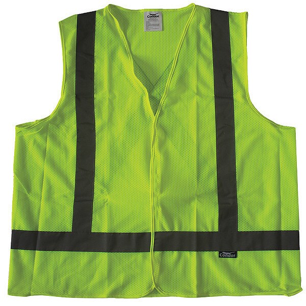 High-Visibility Vest, ANSI Class Not Rated, Vest Size 3XL, Traffic Safety Vest Color Yellow/Green, Fits Chest Size 56 in to 60 in, Gender Men's, Stripe Color Silver, Vest Material Polyester, Vest Closure Type Hook-and-Loop, ATPV Rating Not Rated, Hazard Risk Category (HRC) 0, Vest Stripe Color Family Silver, Back Stripe Pattern X, Vest Length 31 in, Number of Pockets (Inside) 0, Number of Pockets (Outside) 0, Number of Pockets with Closure 0, Features Reflective, Standards CSA Z96