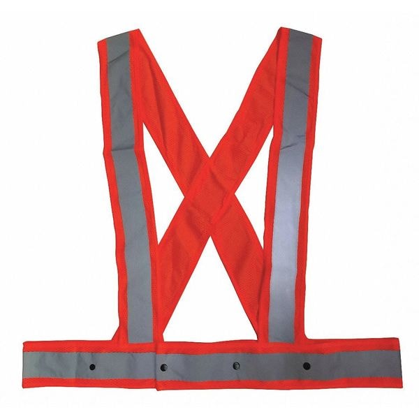 High Visibility Sash, ANSI Class Not Rated, Vest Size 3XL, Traffic Safety Vest Color Orange/Red, Fits Chest Size 56 in to 66 in, Gender Men's, Stripe Color Silver, Vest Material Polyester Mesh, Vest Closure Type Snap, ATPV Rating Not Rated, Hazard Risk Category (HRC) Not Applicable, Vest Stripe Color Family Silver, Back Stripe Pattern X, Vest Length 30 in, Number of Pockets (Inside) 0, Number of Pockets (Outside) 0, Number of Pockets with Closure 0, Features 360 Degrees Visibility
