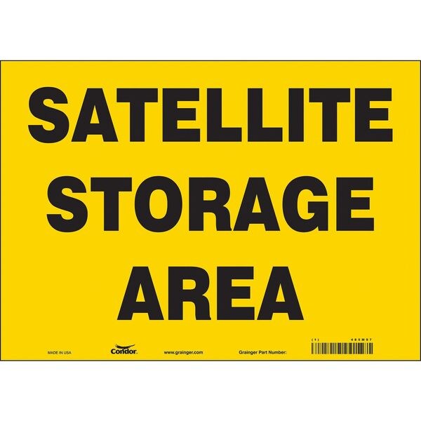 Safety Sign, Horizontal Rectangle, Number of Printed Sides 1, English, Sign Legend Satellite Storage Area, Sign Legend Background Color Yellow, Sign Legend Style Text