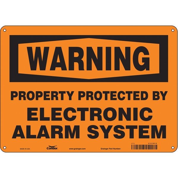 Security Sign, Horizontal Rectangle, Number of Printed Sides 1, English, Sign Format ANSI/OSHA Format, Sign Legend Property Protected By Electronic Alarm System, Sign Legend Background Color Orange, Sign Legend Style Text