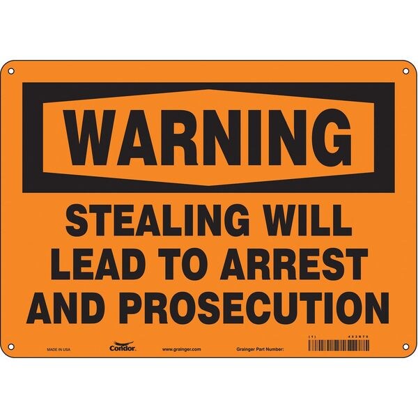 Security Sign, Horizontal Rectangle, Number of Printed Sides 1, English, Sign Legend Stealing Will Lead To Arrest And Prosecution, Sign Legend Background Color Orange, Sign Legend Style Text
