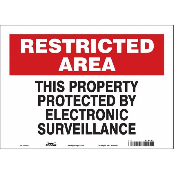 Security Sign, Horizontal Rectangle, Number of Printed Sides 1, English, Sign Format Other Format, Sign Legend This Property Protected By Electronic Surveillance, Sign Legend Background Color Red, White, Sign Legend Style Text