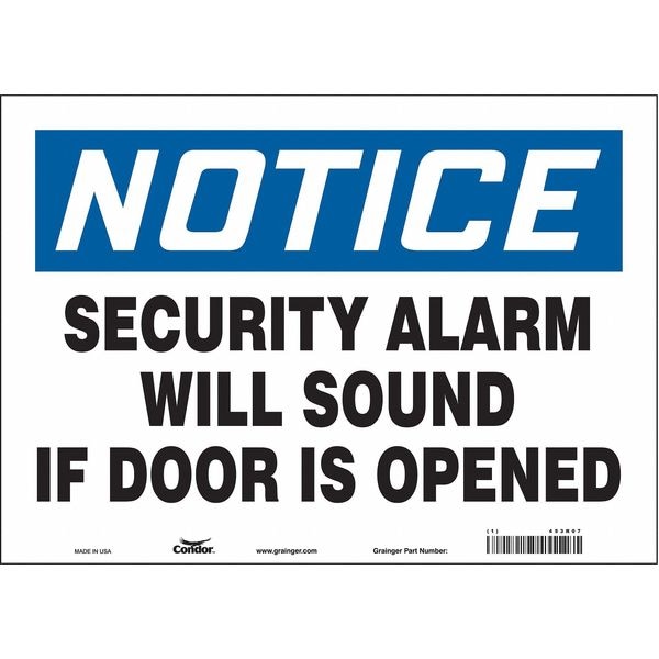 Security Sign, Horizontal Rectangle, Number of Printed Sides 1, English, Sign Legend Security Alarm Will Sound If Door Is Opened, Sign Legend Background Color White, Sign Legend Style Text
