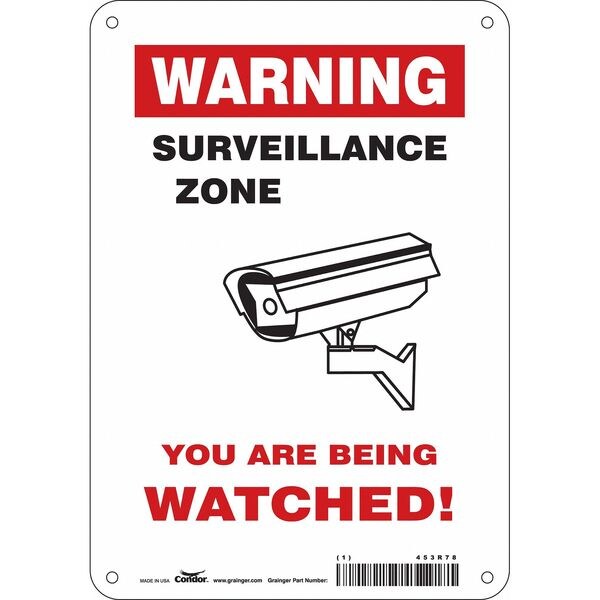 Security Sign, 10 in H, 7 in W, Aluminum, Horizontal Rectangle, English, 453R78
