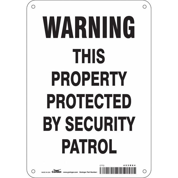 Security Sign, Horizontal Rectangle, Number of Printed Sides 1, English, Sign Format Other Format, Sign Legend Warning This Property Protected By Security Patrol, Sign Legend Background Color White, Sign Legend Style Text