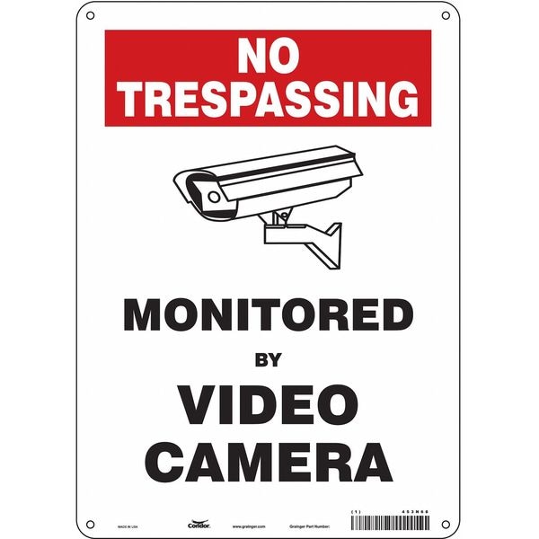Security Sign, Vertical Rectangle, Number of Printed Sides 1, English, Sign Format Other Format, Sign Legend Monitored By Video Camera, Sign Legend Background Color Red, White, Sign Legend Style Symbol and Text