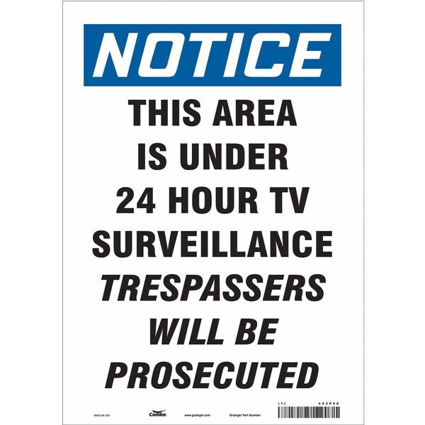 Security Sign, Vertical Rectangle, Number of Printed Sides 1, English, Sign Format Traditional OSHA, Sign Legend This Area Is Under 24 Hour TV Surveillance Trespassers Will Be Prosecuted, Sign Legend Background Color White, Sign Legend Style Text