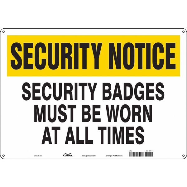 Security Sign, Horizontal Rectangle, Number of Printed Sides 1, English, Sign Legend Security Badges Must Be Worn At All Times, Sign Legend Background Color White, Yellow, Sign Legend Style Text