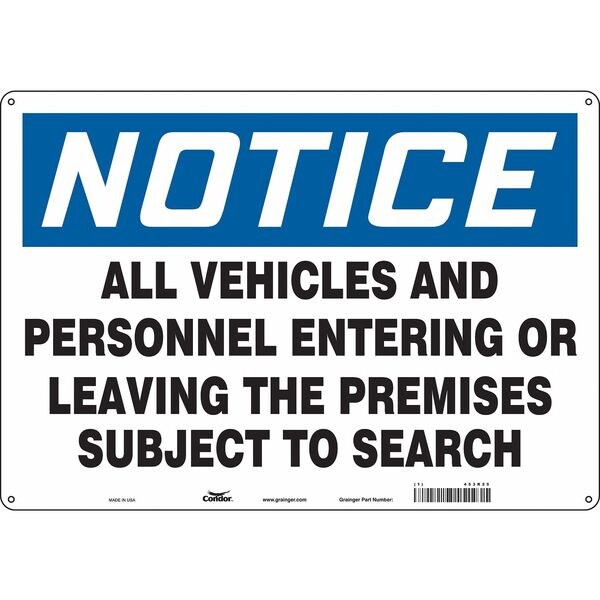 Security Sign, Horizontal Rectangle, Number of Printed Sides 1, English, Sign Format Traditional OSHA, Sign Legend All Vehicles And Personnel Entering Or Leaving The Premises Subject To Search, Sign Legend Background Color White, Sign Legend Style Text