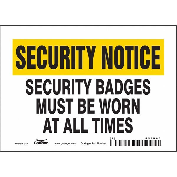 Security Sign, Horizontal Rectangle, Number of Printed Sides 1, English, Sign Format Other Format, Sign Legend Security Badges Must Be Worn At All Times, Sign Legend Background Color White, Yellow, Sign Legend Style Text