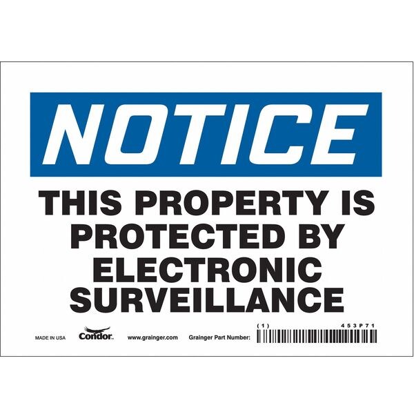 Security Sign, Horizontal Rectangle, Number of Printed Sides 1, English, Sign Format Traditional OSHA, Sign Legend This Property Protected By Electronic Surveillance, Sign Legend Background Color White, Sign Legend Style Text