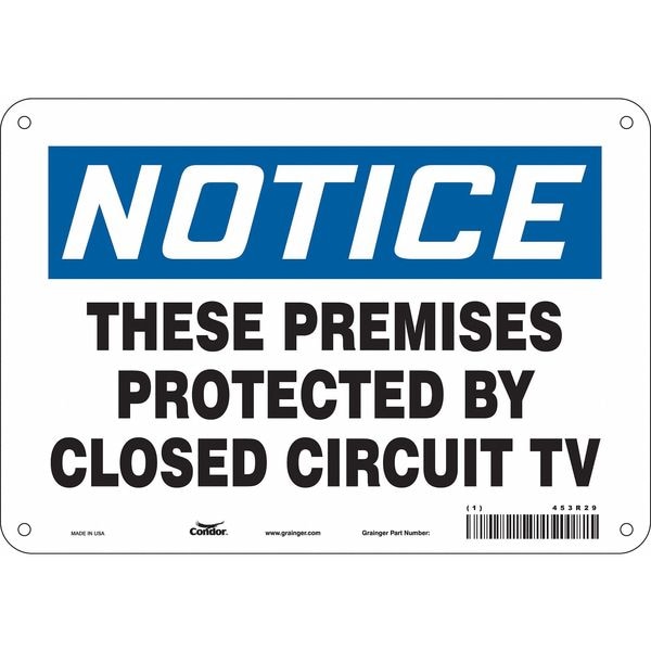 Security Sign, Vertical Rectangle, Number of Printed Sides 1, English, Sign Format Traditional OSHA, Sign Legend These Premises Protected By Closed Circuit Tv, Sign Legend Background Color White, Sign Legend Style Text