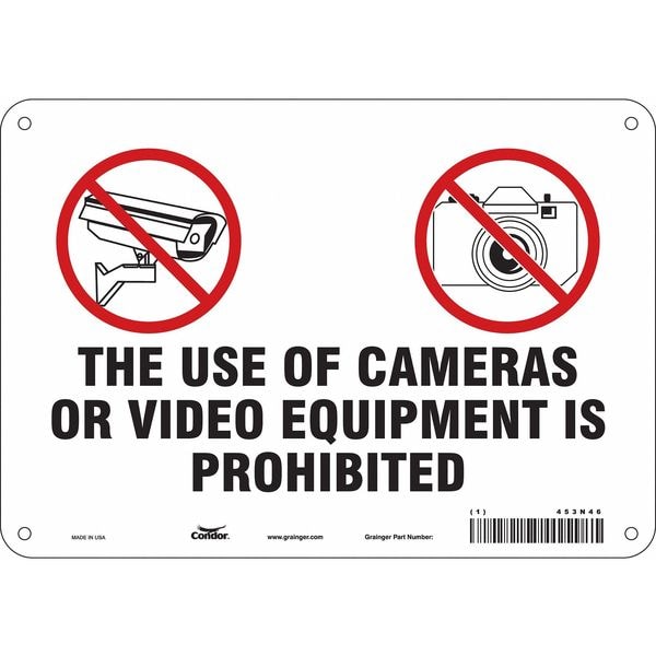 Security Sign, Vertical Rectangle, Number of Printed Sides 1, English, Sign Legend The Use Of Cameras Or Video Equipment Is Prohibited, Sign Legend Background Color White, Sign Legend Style Symbol and Text