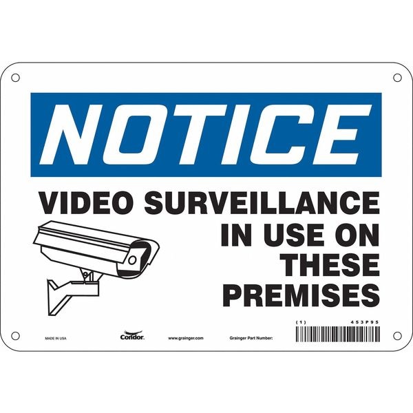 Security Sign, 7 in H, 10 in W, Polyethylene, Vertical Rectangle, English, 453P95