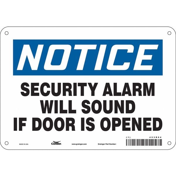 Security Sign, 7 in H, 10 in W, Polyethylene, Vertical Rectangle, English, 453R04