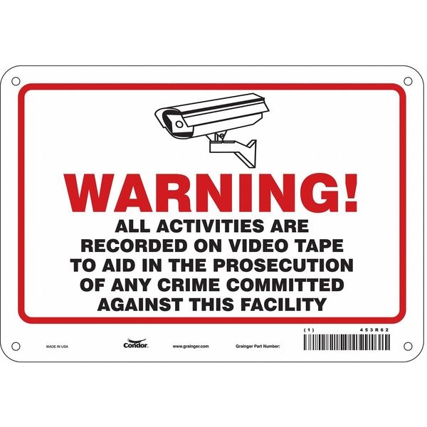 Security Sign, 7 in H, 10 in W, Polyethylene, Vertical Rectangle, English, 453R62