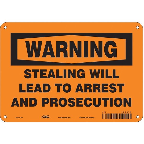 Security Sign, Vertical Rectangle, Number of Printed Sides 1, English, Sign Format ANSI/OSHA Format, Sign Legend Stealing Will Lead To Arrest And Prosecution, Sign Legend Background Color Orange, Sign Legend Style Text