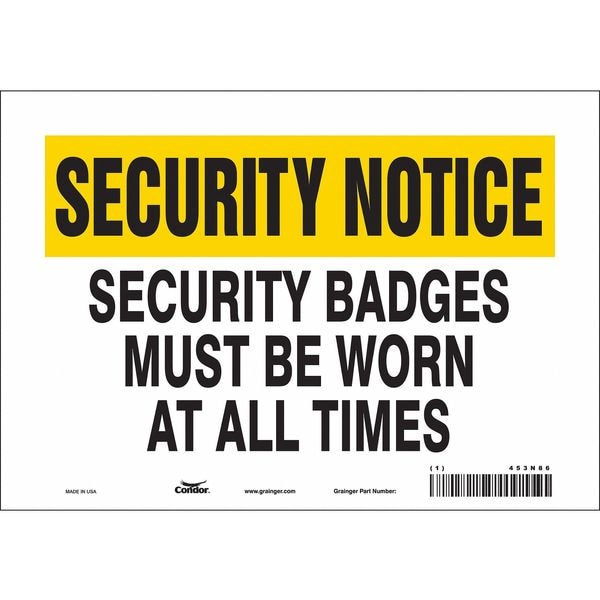 Security Sign, Vertical Rectangle, Number of Printed Sides 1, English, Sign Format Other Format, Sign Legend Security Badges Must Be Worn At All Times, Sign Legend Background Color White, Yellow, Sign Legend Style Text