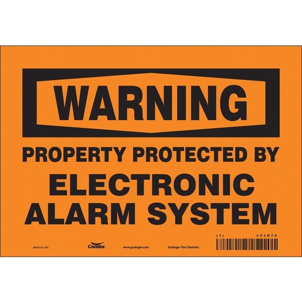 Security Sign, Vertical Rectangle, Number of Printed Sides 1, English, Sign Format ANSI/OSHA Format, Sign Legend Property Protected By Electronic Alarm System, Sign Legend Background Color Orange, Sign Legend Style Text