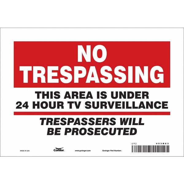Security Sign, Vertical Rectangle, Number of Printed Sides 1, English, Sign Format Other Format, Sign Legend This Area Is Under 24 Hour Tv Surveillance Trespassers Will Be Prosecuted, Sign Legend Background Color Red, White, Sign Legend Style Text