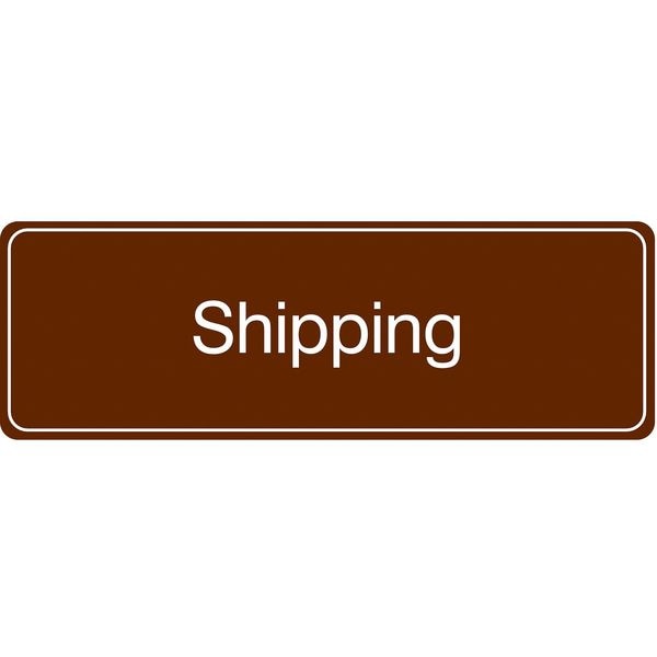 Facility Sign, Horizontal Rectangle, Number of Printed Sides 1, English, Sign Format Other Format, Sign Legend Shipping, Sign Legend Background Color Brown, Sign Legend Style Text