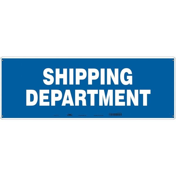 Safety Sign, Horizontal Rectangle, Number of Printed Sides 1, English, Sign Format Other Format, Sign Legend Shipping Department, Sign Legend Background Color Blue, Sign Legend Style Text