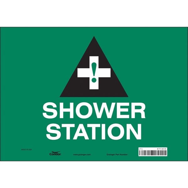 Safety Sign, Horizontal Rectangle, Number of Printed Sides 1, English, Sign Format Other Format, Sign Legend Shower Station, Sign Legend Background Color Green, Sign Legend Style Symbol and Text
