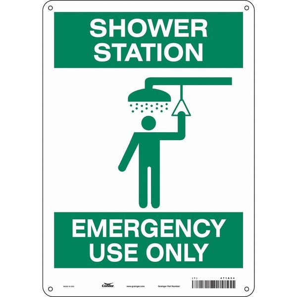 Shower Station Emergency Use Only, 10 in W x 14 in H, Vertical Rectangle, Aluminum, 471A54