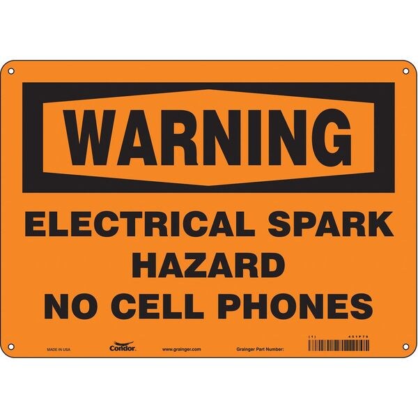 Safety Sign Cell Phone, Horizontal Rectangle, Number of Printed Sides 1, English, Sign Format Traditional OSHA, Sign Legend Electrical Spark Hazard No Cell Phones, Sign Legend Background Color Orange, Sign Legend Style Text