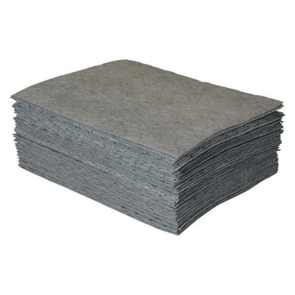 Product Type Sorbent Pad, Fluids Absorbed Universal, For Use With Chemical or Metal Type Universal, Size 15 in x 19 in, Volume Absorbed Per Pad 33 5/8 oz, Volume Absorbed per Pkg. 14 gal, Color/Pattern Gray, Material Polypropylene, Number of Layers 1, Perforated Not Perforated, Perforated Size Not Perforated, Package Quantity 50