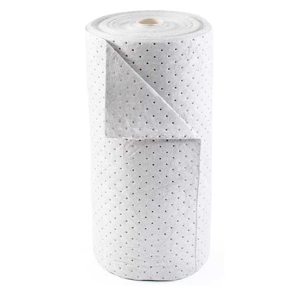 Product Type Sorbent Roll, Fluids Absorbed Acids, Bases, For Use With Chemical or Metal Type Citric Acid, Hydrofluoric Acid, Sodium Hydroxide, Size 30 in x 150 ft, Volume Absorbed per Pkg. 38 gal, Color/Pattern White, Material Polypropylene, Number of Layers 1, Perforated Not Perforated, Perforated Size Not Perforated
