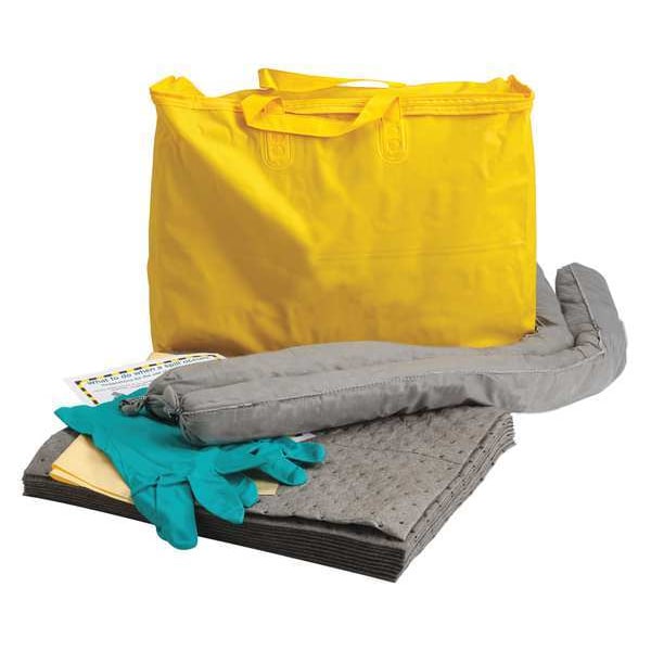 Spill Kit, 5 gal Volume Absorbed per Kit, 5 gal Capacity, Bag, Yellow