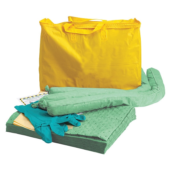 Spill Kit, 5 gal Volume Absorbed per Kit, 7 gal Capacity, Bag, Yellow, 20