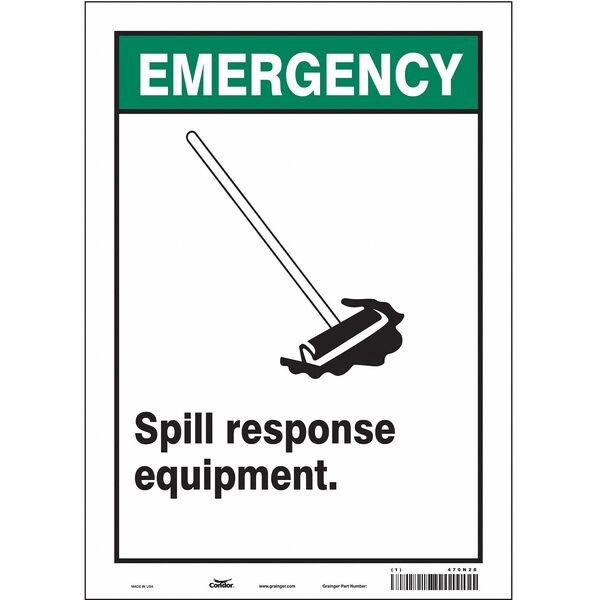 Safety Sign, Vertical Rectangle, Number of Printed Sides 1, English, Sign Legend Spill Response Equipment., Sign Legend Background Color Green; White, Sign Legend Style Symbol and Text
