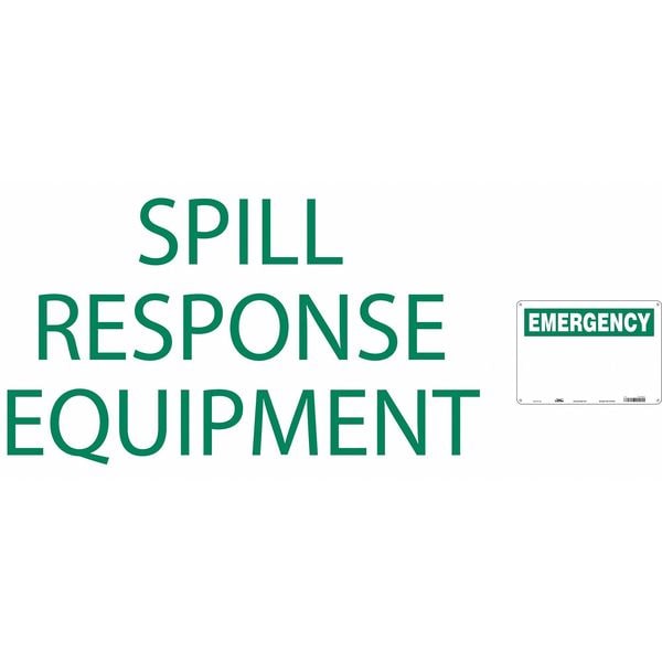 Safety Sign, Horizontal Rectangle, Number of Printed Sides 1, English, Sign Format Other Format, Sign Legend Spill Response Equipment, Sign Legend Background Color Green; White, Sign Legend Style Text