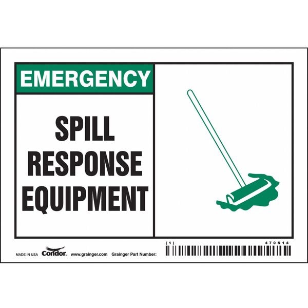 Safety Sign, Horizontal Rectangle, Number of Printed Sides 1, English, Sign Format Other Format, Sign Legend Spill Response Equipment, Sign Legend Background Color Green; White, Sign Legend Style Symbol and Text