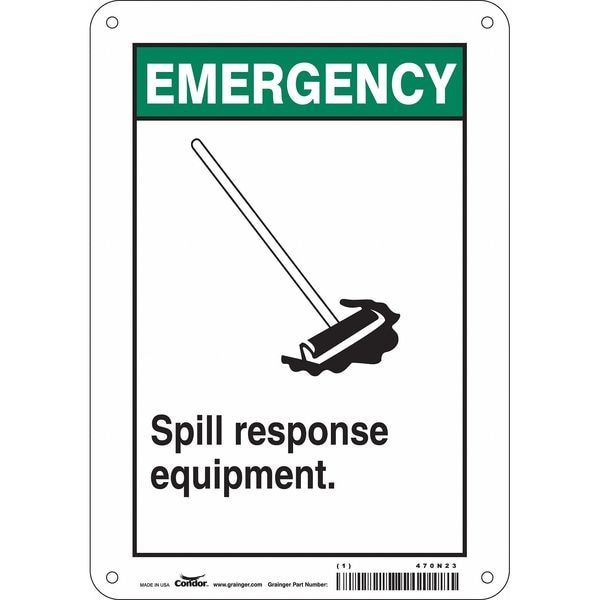 Safety Sign, Horizontal Rectangle, Number of Printed Sides 1, English, Sign Format Other Format, Sign Legend Spill Response Equipment., Sign Legend Background Color Green; White, Sign Legend Style Symbol and Text