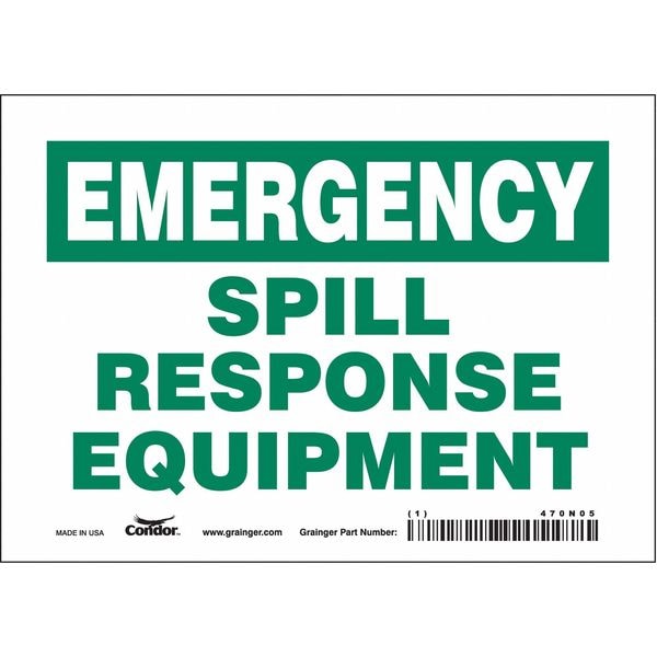 Safety Sign, Horizontal Rectangle, Number of Printed Sides 1, English, Sign Legend Spill Response Equipment, Sign Legend Background Color Green; White, Sign Legend Style Text